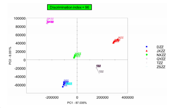 参考文献:YupingDai,DanHuang,YeHe,etal.ExploratoryStudyonDistinguishingDendrobiumStemandFiveSpeciesofDendrobiumUsingHeraclesNeoUltra-FastGasPhaseElectronicNose[J].